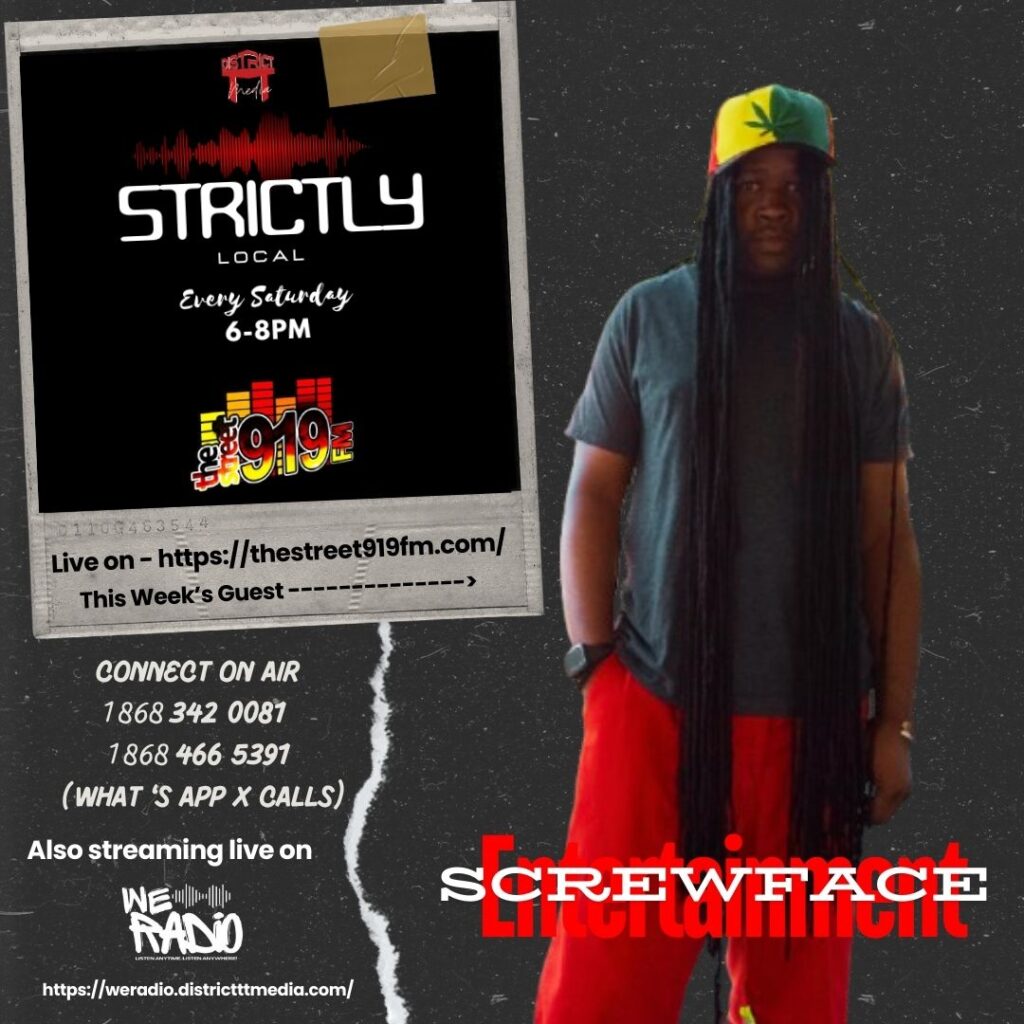 District TT Media and the Strictly Local Radio Show, powered by DjFlexx868, turned up the heat with a session that embodied pure Trinbago artistry. This episode welcomed Shawn Williams — better known as Screwface Entertainment — a name that has become synonymous with raw energy, lyrical creativity, and unforgettable Caribbean vibes. From the moment he stepped into the studio, the atmosphere was charged with anticipation, setting the stage for a musical journey that celebrated both tradition and innovation.